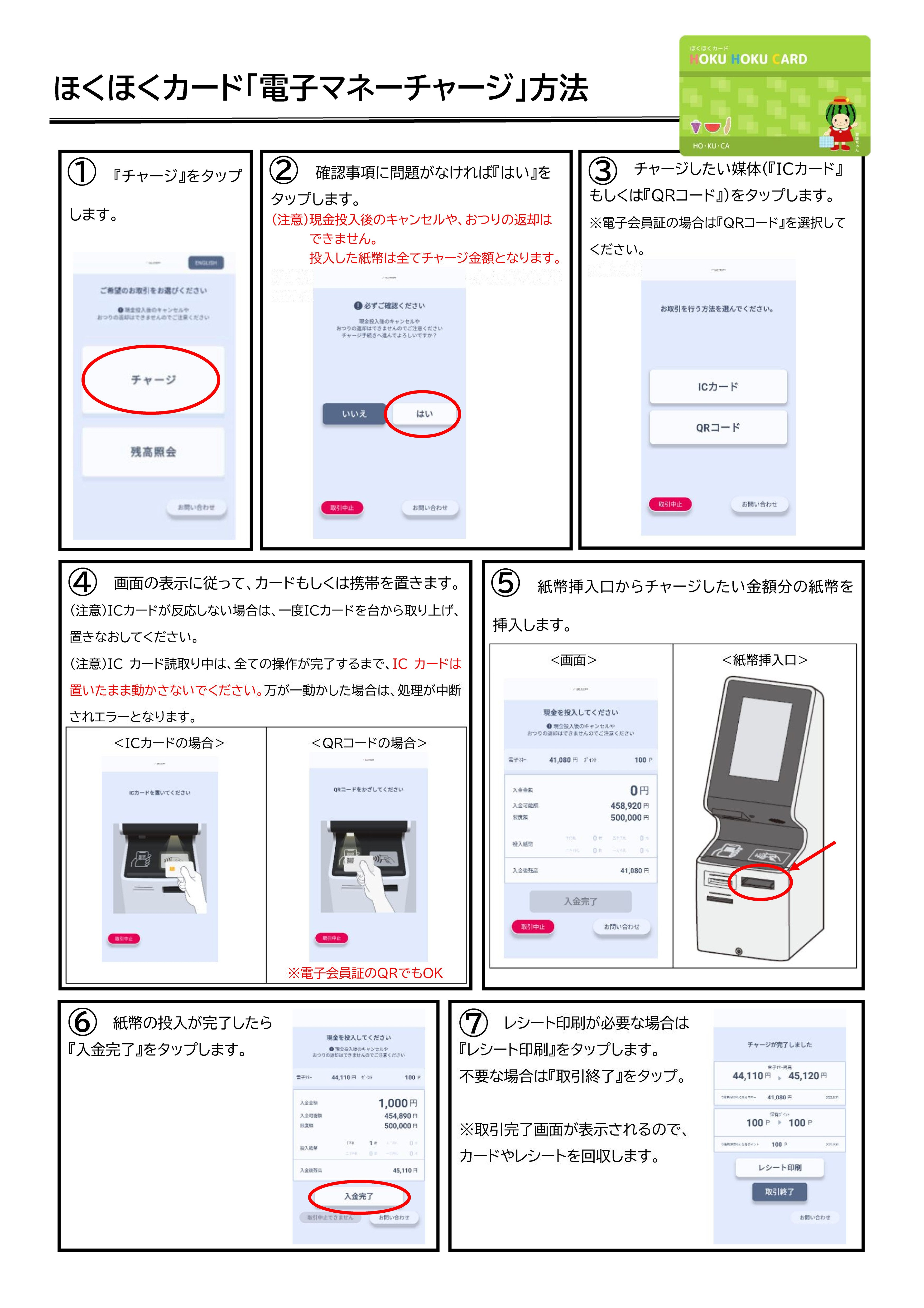 電子マネーチャージ機使用方法 |